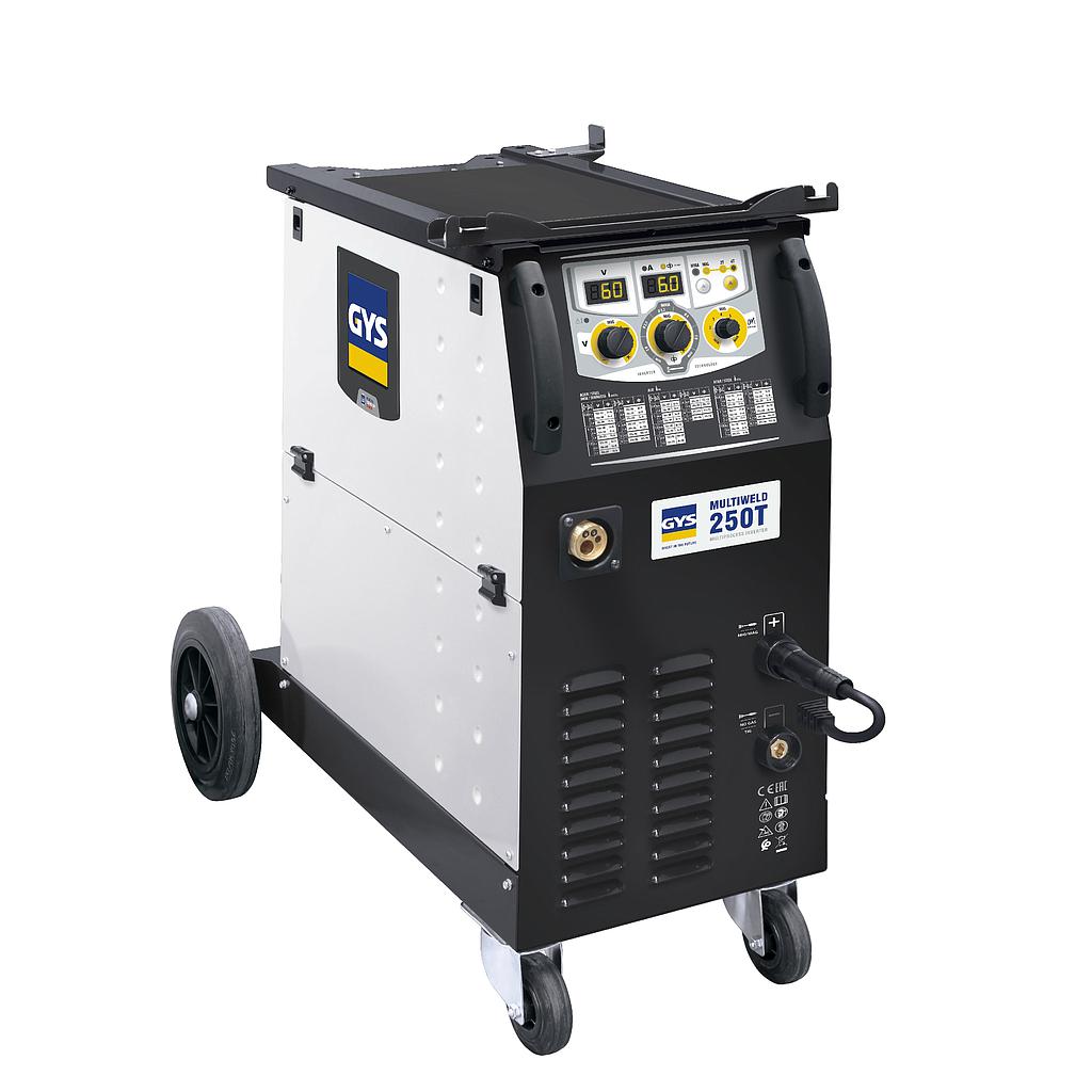 The MULTIWELD 250T is a semi-automatic three-phase welding machine, combining MIG/MAG, cored wire and MMA welding processes. Its intuitive interface integrates digital displays for easy and precise adjustment. Recommended for welding steel, stainless steel and aluminium, the MULTIWELD 250T is perfect for light fabrication and maintenance workshops.