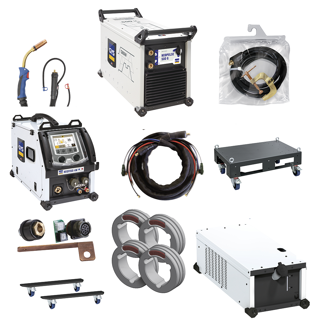 Digital technology, the NEOPULSE 500 G is a pulsed MIG/MAG welding power source with a separate wire feeder. Ultra high performance and designed for the highest performance level using the latest technology, it features +100 synergic curves and exceptional arc quality/performances. Intuitive and highly functional, its digital interface allows you to change welding parameters with ease. Equipped with its NEOFEED-4W reel (optional), this welding power source provides productivity and quality of unmatched welding on all types of alloys.