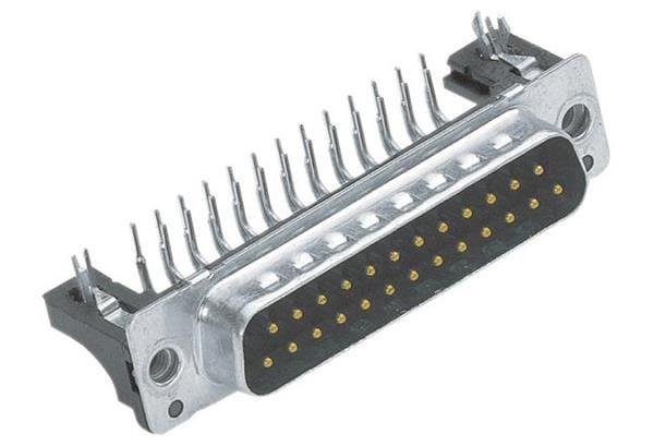 HARTING 09663627817 D-Sub Connectors - Standard Density D-Sub 25pin male low profile angled, 2.54mm pitch, turned, with board locks, 4-40UNC screw lock, PL3
