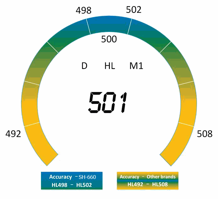 High repeatability accuracy: +/-4 HL (or 0.3% @HL800)