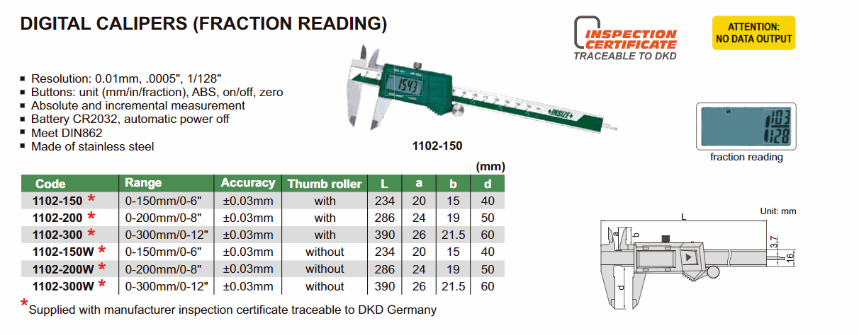 INSIZE 1102-150 Electronic Caliper (0~150mm) | EMIN.ASIA
