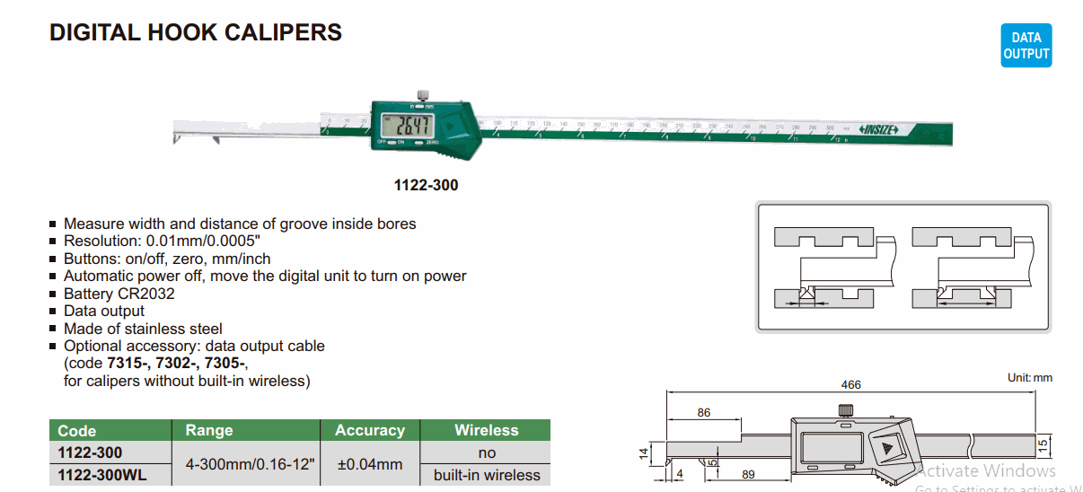 INSIZE 1122-300 Digital Hook Caliper (4-300mm/0.16-12”; 0.01mm/0.0005”; No built-in wireless) | EMIN.ASIA