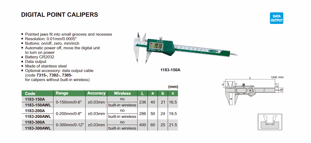 INSIZE 1183-150AWL Digital Point Caliper (0-150mm/0-6") | EMIN.ASIA