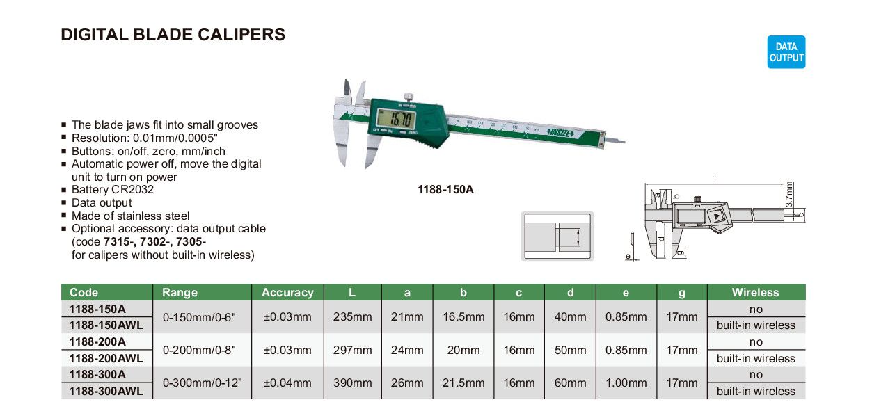 INSIZE 1188-150AWL Built-In Wireless Digital Blade Caliper (0-150mm/0-6") | EMIN.ASIA