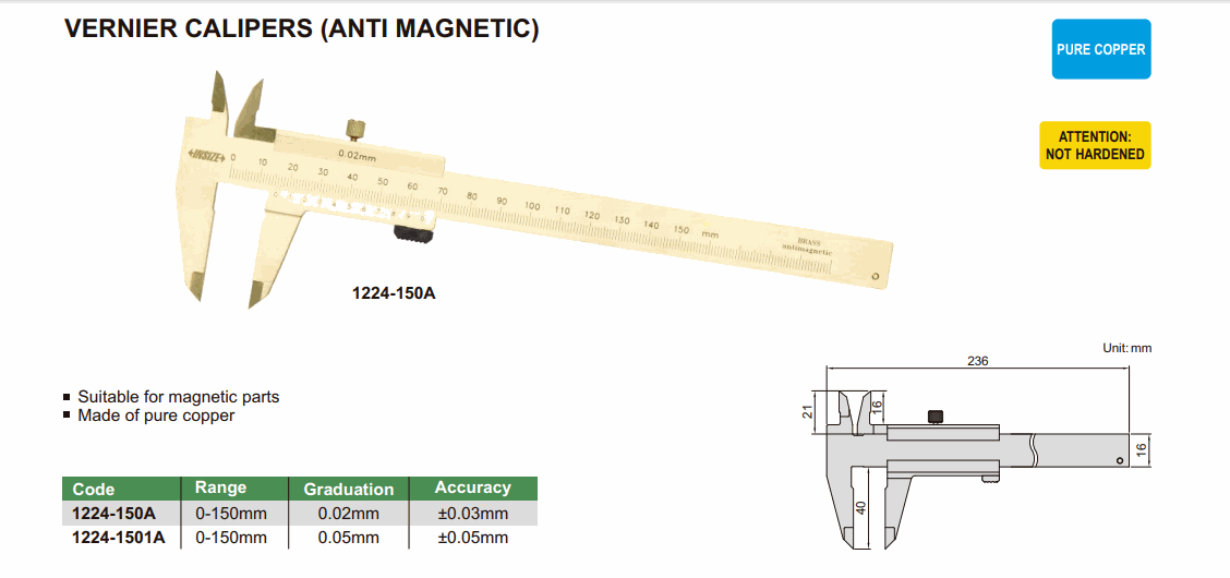 INSIZE 1224-150A Vernier Caliper (Anti Magnetic) (0-150mm; 0.02mm; ±0.03mm) | EMIN.ASIA