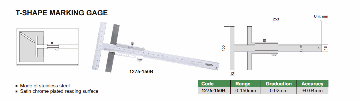 INSIZE 1275-150A T-Shape Marking Gage (0~150mm) | EMIN.ASIA