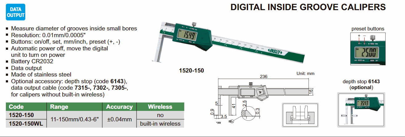 INSIZE 1520-150 Digital Inside Groove Caliper (11~150mm) | EMIN.ASIA