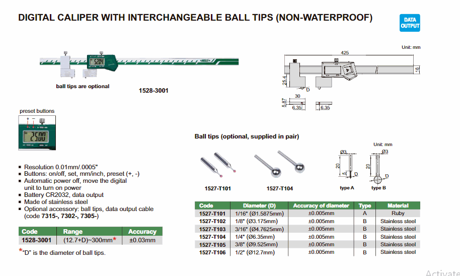 INSIZE 1528-3001 Digital Caliper With Interchangeable Ball Tip ((12.7+D)~300mm) | EMIN.ASIA
