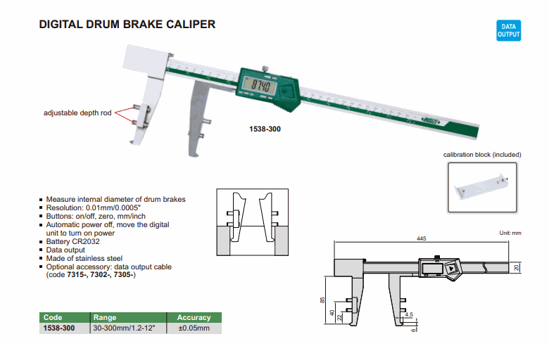 INSIZE 1538-300 Digital Drum Brake Caliper (30-300mm/1.2-12”; 0.01mm/0.0005”) | EMIN.ASIA