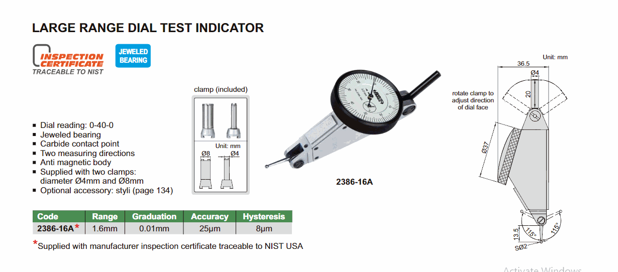 INSIZE 2386-16A Large Range Dial Test Indicator (1.6mm; 0.01mm) | EMIN.ASIA