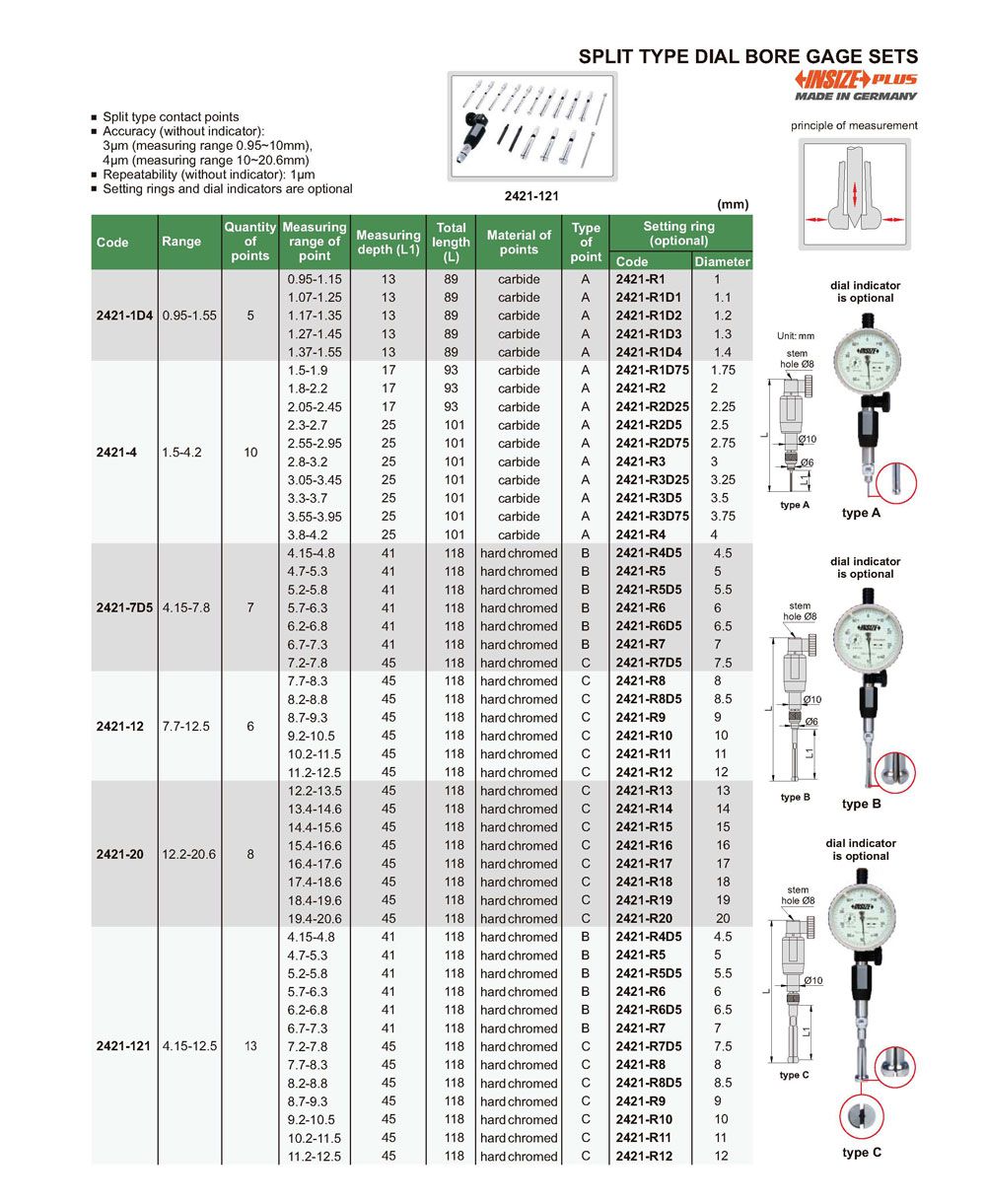 Measuring range of point: 4.15-4.8mm; 4.7-5.3mm; 5.2-5.8mm; 5.7-6.3mm; 6.2-6.8mm; 6.7-7.3mm; 7.2-7.8mm; 7.7-8.3mm; 8.2-8.8mm; 8.7-9.3mm; 9.2-10.5mm; 10.2-11.5mm; 11.2-12.5mm