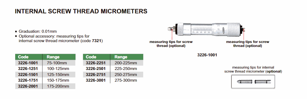 INSIZE 3226-2001 Internal Screw Thread Micrometer (175-200mm; 0.01mm) | EMIN.ASIA