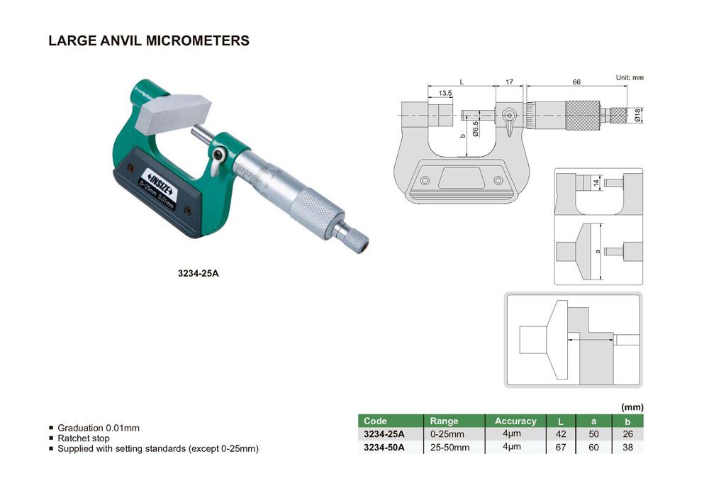 INSIZE 3234-50A Large Anvil Micrometer (25-50mm; 0.01mm) | EMIN.ASIA