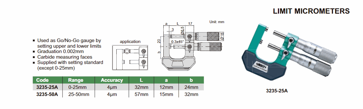 INSIZE 3235-50A Limit Micrometer (25-50mm; 0.002mm; 4µm) | EMIN.ASIA