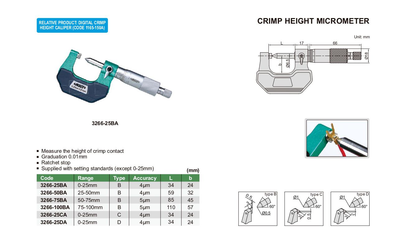 INSIZE 3266-50BA Crimp Height Micrometer (25-50mm) | EMIN.ASIA