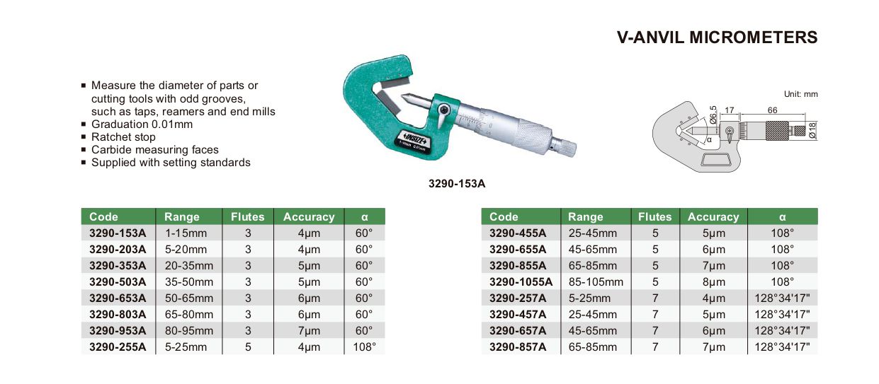 INSIZE 3290-255A V-anvil Micrometer (5-25mm) | EMIN.ASIA