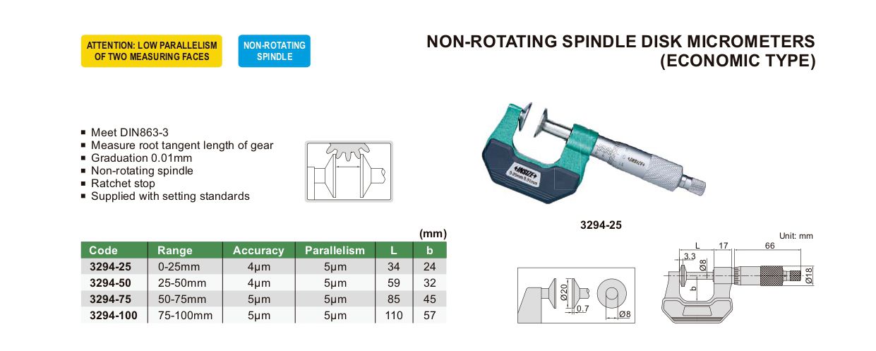 INSIZE 3294-75 Non-Rotating Spindle Disk Micrometer (50-75mm) | EMIN.ASIA