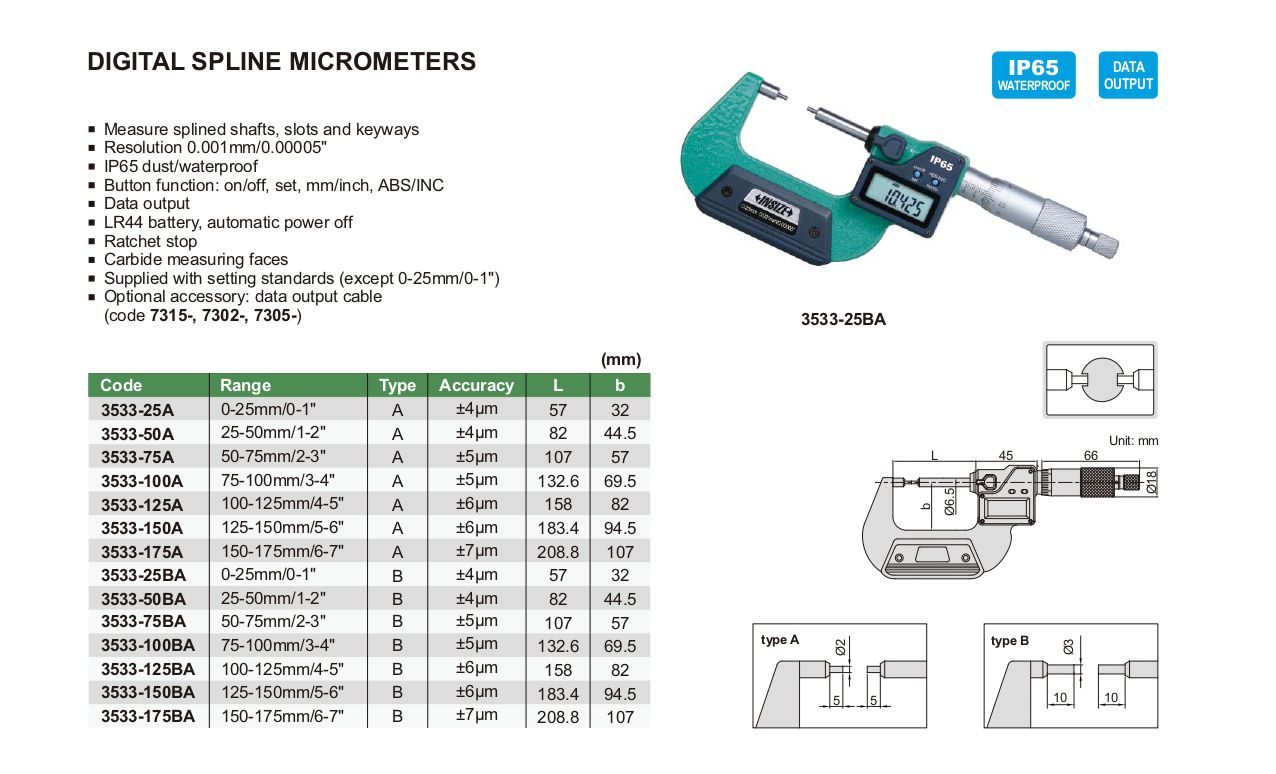 INSIZE 3533-100BA Digital Spline Micrometer (75-100mm/3-4"/Type B) | EMIN.ASIA