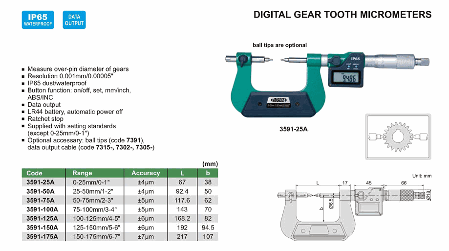 INSIZE 3591-150A Digital Gear Tooth Micrometer (125-150mm/5-6") | EMIN.ASIA