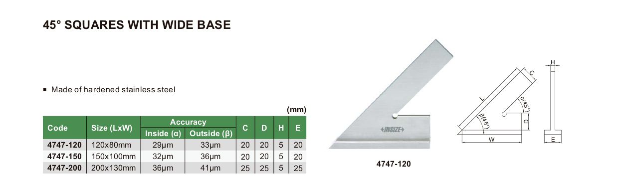 INSIZE 4747-120 45° Square With Wide Base (45°; 120x80mm) | EMIN.ASIA