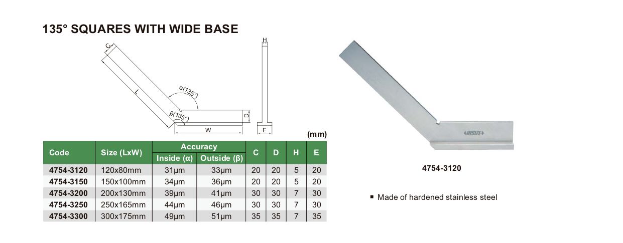 INSIZE 4754-3120 135° Square With Wide Base (135°; 120x80mm) | EMIN.ASIA