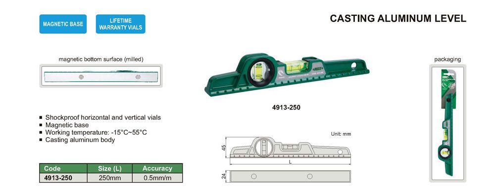 INSIZE 4913-250 Cast Aluminum Level (250mm; 0.5mm/m) | EMIN.ASIA
