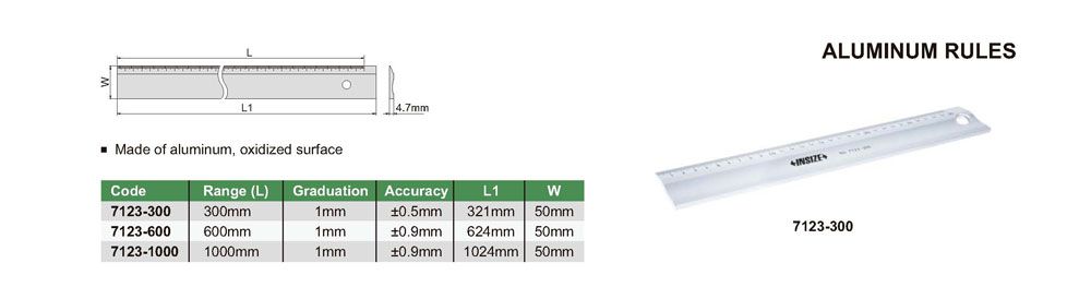 INSIZE 7123-300 Aluminum Rule (0-300mm; 1mm) | EMIN.ASIA