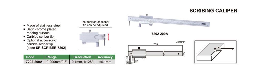 INSIZE 7202-200A Scribing Caliper (0-200mm/0-8"; 0.1mmm; 1/128"; ±0.1mm) | EMIN.ASIA