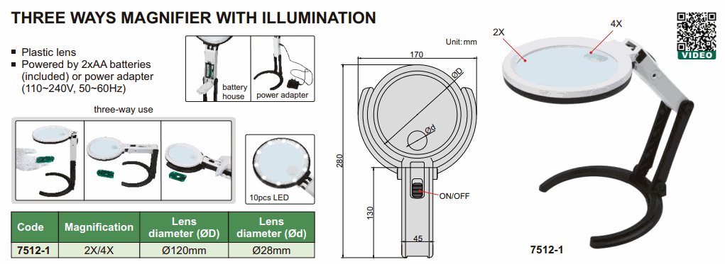INSIZE 7512-1 Three ways Magnifier with illumination | EMIN.ASIA
