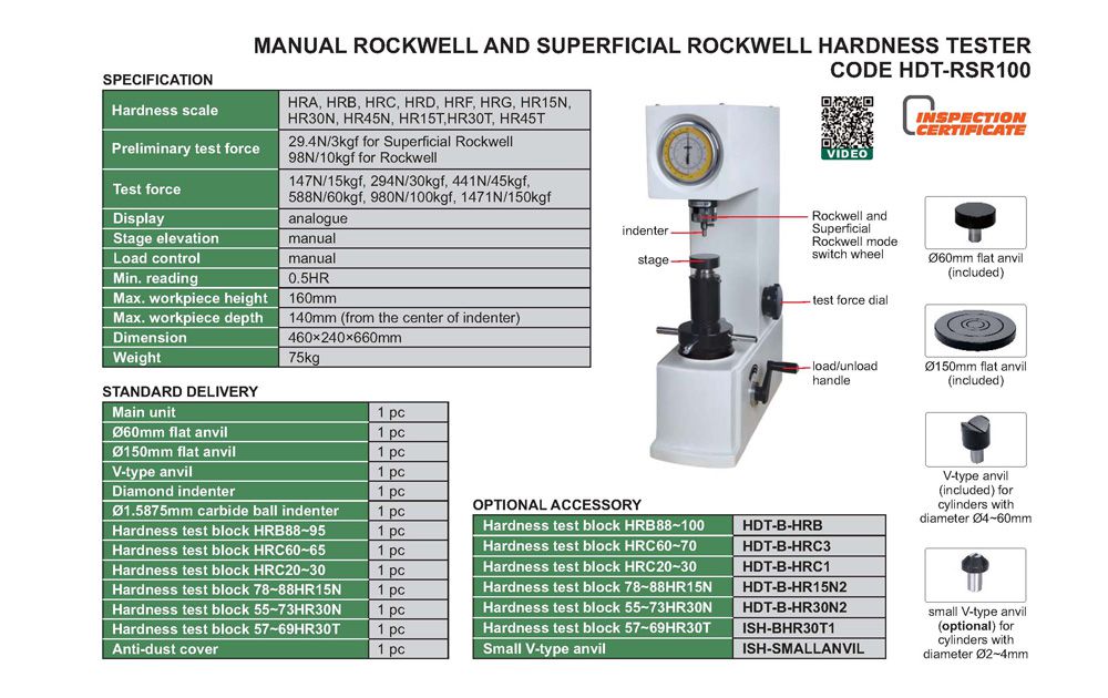 Hardness scale:HRA, HRB, HRC, , HRD, HRF, HRG, RH15N, RH30N, RH45N, RH15T, RH30T, RH45T