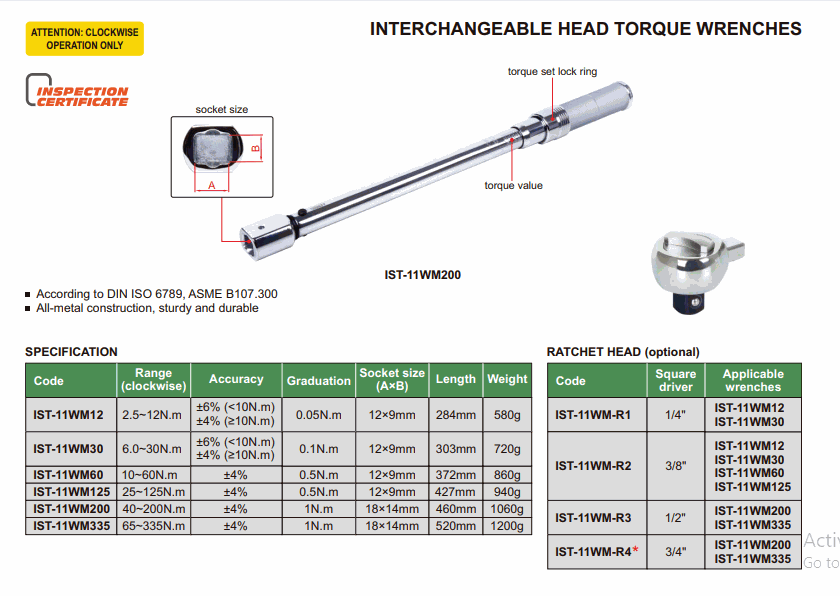 INSIZE IST-11WM12 Interchangeable Head Torque Wrench (2.5~12N.m; 0.05N.m) | EMIN.ASIA
