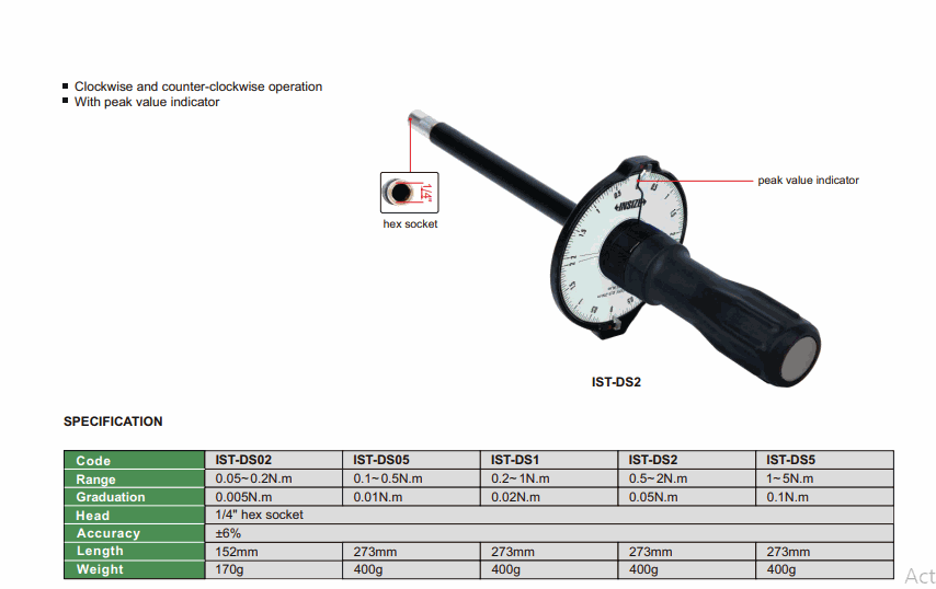 INSIZE IST-DS05 Dial Torque Screwdriver (0.1~0.5N.m; 0.01N.m) | EMIN.ASIA