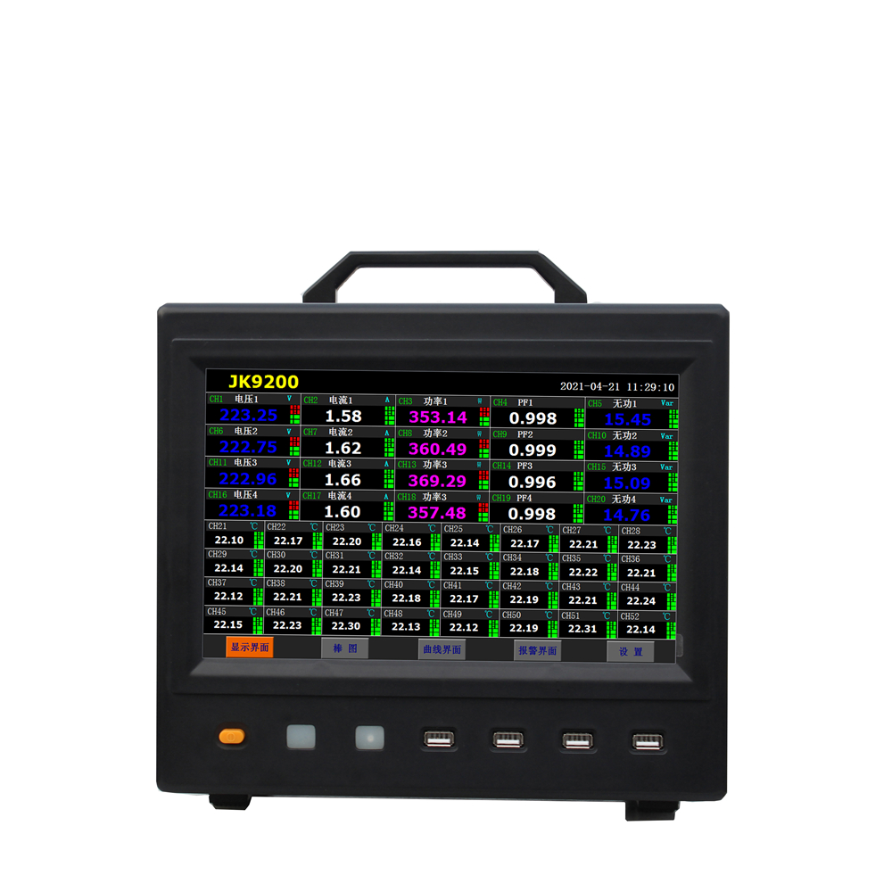 Measurement items: Voltage V, current A, active power W, power factor, reactive power VAR, frequency Hz, apparent power VA, forward and reverse quantity of electric charge kW.h, fundamental power W, harmonic power W, total harmonic power W, temperature measurement and acquisition
