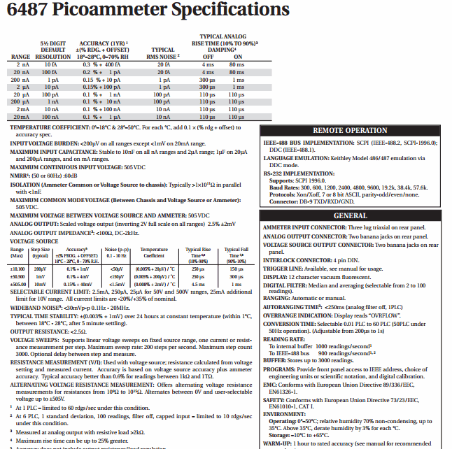 KEITHLEY 6487 Picoammeter/ Voltage Source (20mA, 0.3%) | EMIN.ASIA