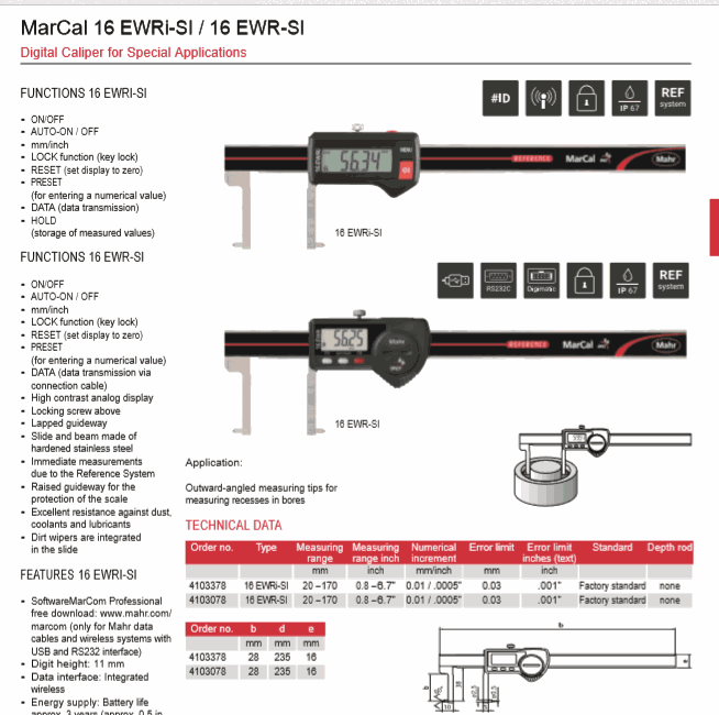 Mahr 4103378 Digital Caliper for Special Applications (16 EWRi-SI, 20-170mm) | EMIN.ASIA