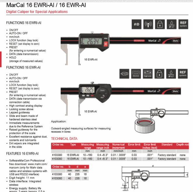 Mahr 4103380 Digital Caliper for Special Applications (16 EWRi-AI, 10-160mm) | EMIN.ASIA
