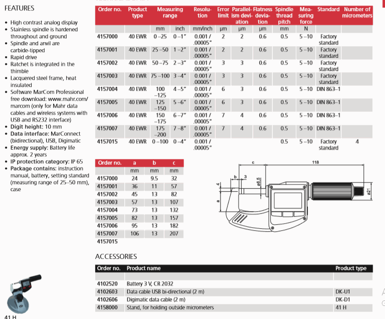 Mahr 4157006 Digital Micrometer (40 EWR, 150-175mm/6-7") | EMIN.ASIA