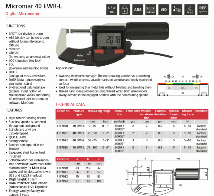 Mahr 4157023 Digital Micrometer (40 EWR-L, 75-100mm/3-4") | EMIN.ASIA