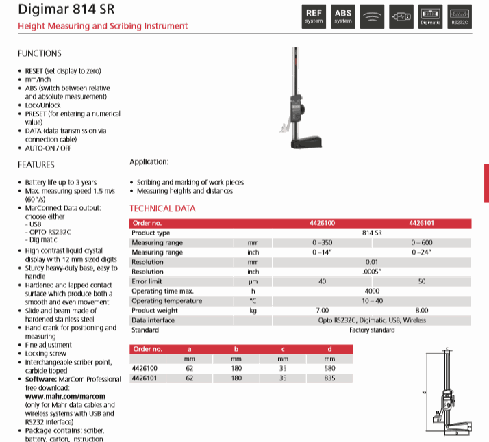 Mahr 4426101 Height Measuring and Scribing Instrument (814 SR, 0 – 600mm/0 – 24”) | EMIN.ASIA