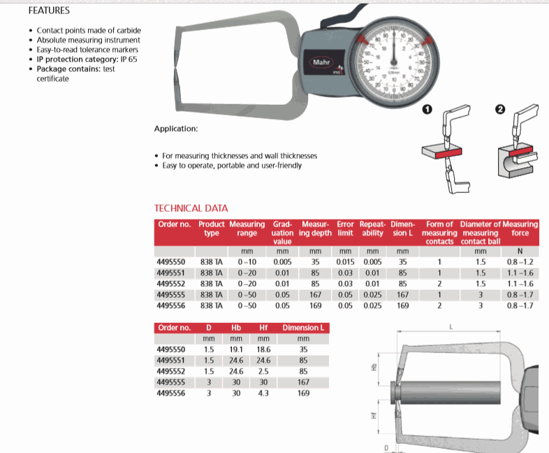 Mahr 4495552 Gage For External Measurement (838 TA, 0 – 20mm, 0.01mm) | EMIN.ASIA
