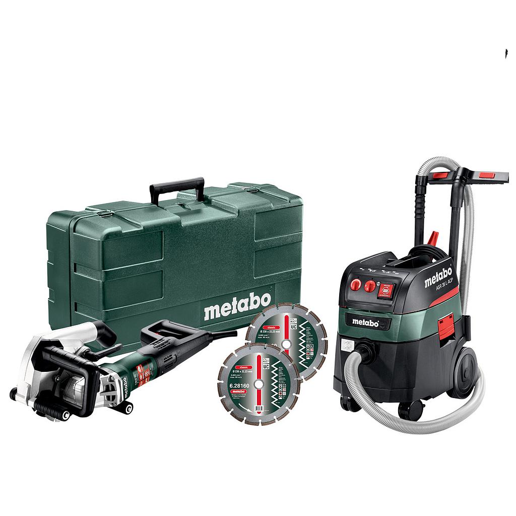 Wall chaser MFE 40: spacer rings, flange nut, pin-type face wrench, break-out tool, 2 diamond cutting discs Classic UC, plastic carry case
