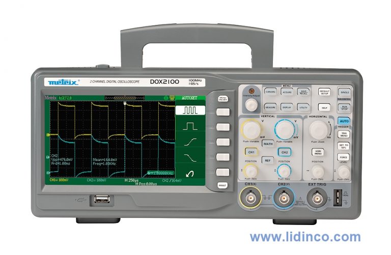 - MATH functions on the channels: Trace calculated in "real time": CH1 and CH2: addition, subtraction, multiplication, division