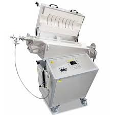 Furnace designed as table-top model with quartz glass reactor which opens on both sides, tapered ends