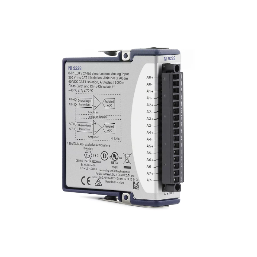 The C Series Voltage Input Module helps you work with voltage measurement applications. This module features isolation to separate channels from each other, from COM, or from earth ground for safety, noise immunity, and high common-mode voltage range. The module features up to 100 V of overvoltage protection for errant signal connection or unexpected outputs to the individual channels. You can use included options such as configurable input ranges, output channels, various connectors, and enclosed or non-enclosed modules.The C Series Voltage Input Module includes the NI-DAQmx driver and configuration utility that simplify configuration and measurements. NI-DAQmx supports NI programming environments as well as Python, ANSI C, C#.NET, and MathWorks MATLAB® software.