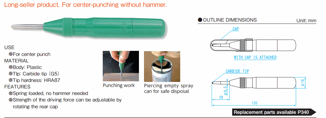 Niigata Seiki AP-M CARBIDE TIP AUTOMATIC CENTER PUNCH M | EMIN.ASIA