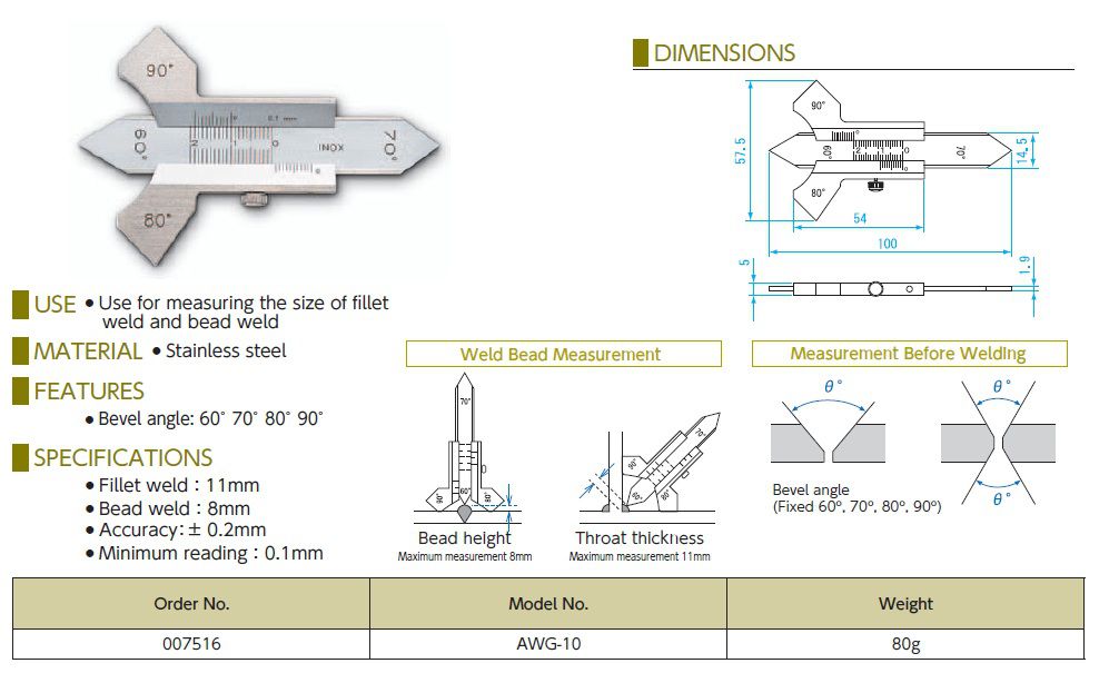 Niigata Seiki AWG-10 Welding Gauge | EMIN.ASIA
