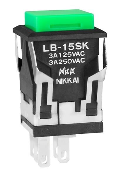NKK Switches LB15SKW01-F Pushbutton Switches SPDT ON(ON) SQUARE BLACK BODY GREEN CAP | EMIN.ASIA