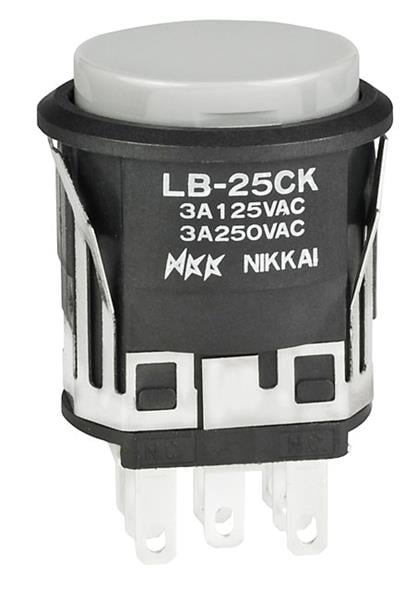 NKK Switches LB25CKW01-H Pushbutton Switches DPDT ON-(ON) BLACK ROUND GRAY CAP | EMIN.ASIA