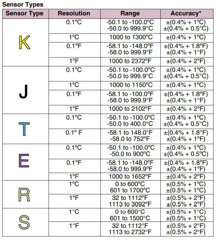 Sensor: Type J, K, T, E, R/S thermocouple probe Pt100 Ω (european curve) for RDXL4SD model only