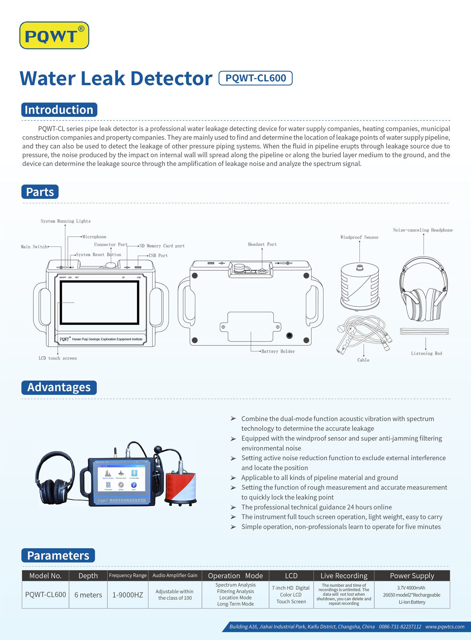 PQWT PQWT-CL600 Water Leak Detector (6m; 1~9000Hz) | EMIN.ASIA